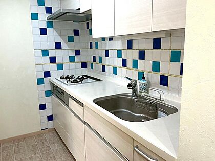 オシャレなモザイクタイルを使用したキッチン♪もちろん収納力も兼ね備えています。