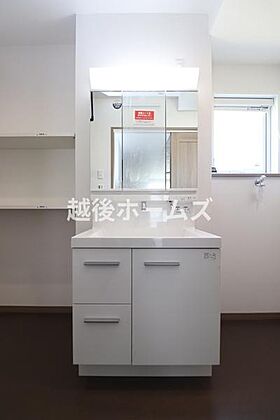 3面鏡のシャンプードレッサーは収納充実!朝のお支度も楽々できますね。