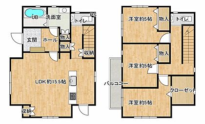 【間取図】3LDK住宅です。各居室に収納付きです。
