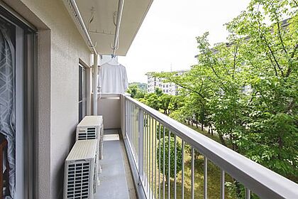 2部屋にまたがる広々バルコニー!四季の移ろいを眺めながらお過ごしいただけます。
