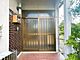 【現況販売/玄関】雨の日はポーチ部分で雨合羽の着脱ができます。玄関出て左側からは駐車場につながっています。