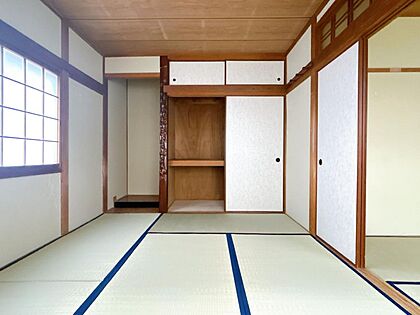 【現況販売/2階和室】押し入れもあるので布団も収納できます。収納の建具は部分補修を行いました。畳の表替えを行ったので、イグサの香りがします。