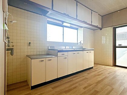 【現況販売/キッチン】ガスコンロを置くだけで、ご使用いただけます。たくさん収納もできそうですね。