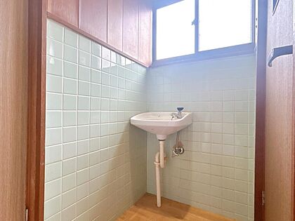 【現況販売/手洗い】お手洗いの目の前の廊下には手洗い場があります。帰宅後さっと手を洗える場所があるのは便利ですね。