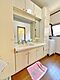 壁一面カウンターがあるので鏡も大きく、空間全体に奥行きが生まれ広く感じられます。