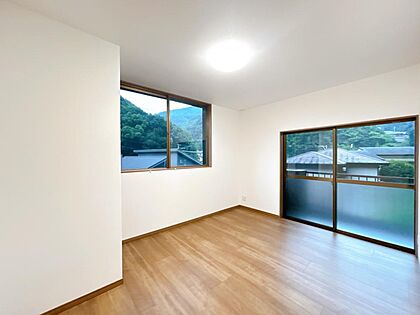 •  【リフォーム済】2階南西側5.5帖洋室の写真です。フローリング上張り、クロス張替え、建具交換、照明交換を行いました。