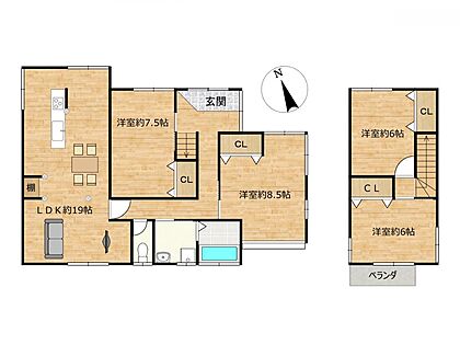 •  【間取図】リフォーム後の間取図です。リビング約19帖と別で1階は洋室2部屋、2階も洋室2部屋の合計4LDKになる予定です