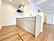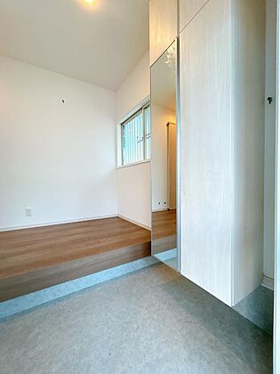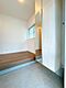 【リフォーム済】玄関(内観)です。長尺シート上張り、シューズボックスの交換、クロス張替え、照明交換を行いました。