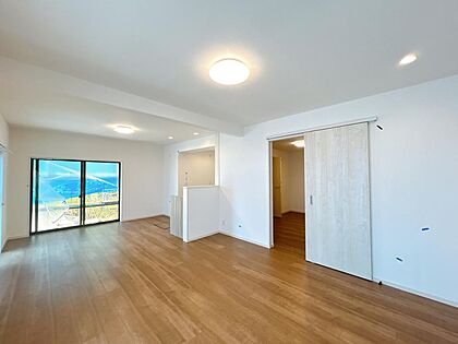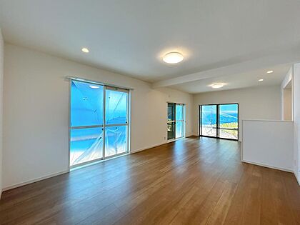 【リフォーム済】リビングの別角度写真です。18.5帖のリビングで家族団らんでくつろげます。