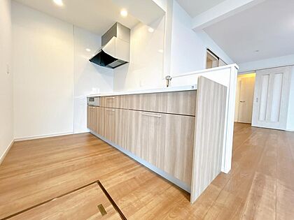 【リフォーム済】キッチンはハウステック製の新品に交換しました。収納はたっぷり入り便利な引き出し式で天板は高級感のある人工大理石なので傷がつきにくく使いやすいですよ。