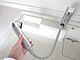 【リフォーム済】新品交換したキッチンの水栓金具はノズルが伸びてシンクのお手入れもラクラクです。