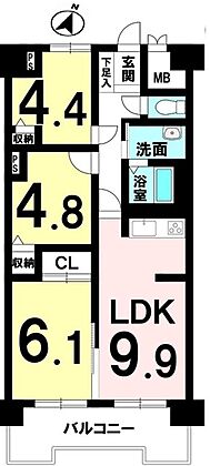 LDK+隣接洋室、開放して広々使えますね。おもてなしスペースにもどうぞ。