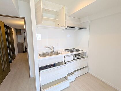 キッチンにも清潔感を追求。白亜の台所でお料理を存分に楽しんでください。