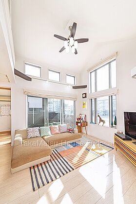 吹き抜け天井は解放感があり、空間が実際よりも広さを感じていただけるかと思います。