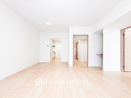 明るく開放的な空間が広がるLDK。室内には豊かな陽光が注ぎ込み、爽やかな住空間を演出。