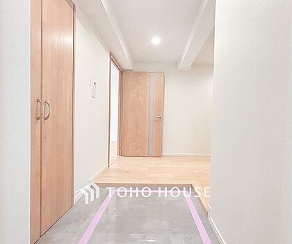 上質感漂う廊下。居住者の帰り、訪れる方を優しく迎える・安らぎに満ちた生活空間を予感させる。