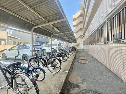 駐輪場は屋根付きなので雨や風から大切な自転車を守ってくれます♪
