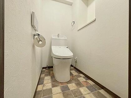 温水洗浄機能付きのトイレです♪棚もあり使いやすさと快適さを兼ね備えています♪