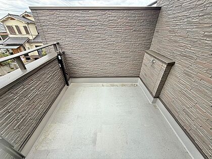 現地(2025年5月)撮影。ゆったりとしたバルコニーには、屋外水栓が設置されており、お子様のプール遊びもできますよ♪