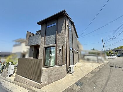 現地(2025年5月)撮影。シックで落ち着いた色合いのスタイリッシュな外観です♪南東角地につき陽光を取り入れ、明るい室内はご家族の気持ちも明るくなりますね♪