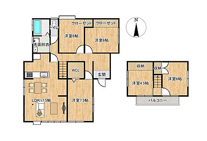 【間取り図】間取り変更を行い、5SLDKに生まれ変わりました。1階にリビング以外の居室が3室あり、使いやすい間取りです。