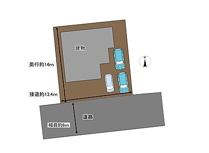【区画図】駐車場は拡張工事を行い、普通車2台、軽自動車1台駐車可能になりました。