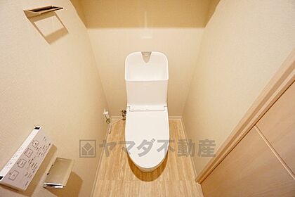 温水、暖房、ウォシュレット付の高機能トイレです。棚を設置して観葉植物や写真等を飾ればステキな空間になりそうです^^