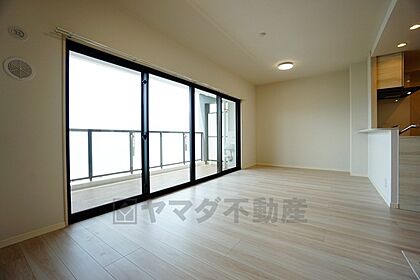 家具はイメージです。大きな窓のあるリビングは、陽光あふれる明るい空間です。居心地良く、ご家族皆がゆったりくつろげる憩いの空間となりそうです。