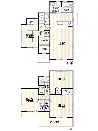 間取り図です。各室収納付きの4SLDKの物件です。キッチン近くに洗面室があり家事導線がいい間取りとなっています。