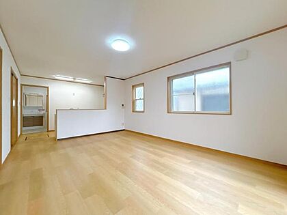 【リフォーム済】LDK(別角度)です。クロス張替え、フロアタイル重ね張りを行っています。