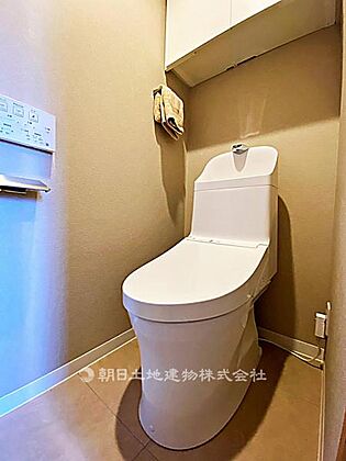トイレには快適な温水洗浄便座付。いつも使うトイレだからこそ、こだわりたいポイントですね。