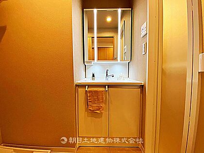 収納力と機能性に優れ、お手入れラクラク三面鏡洗面化粧台です。朝の身だしなみもバッチリですね。