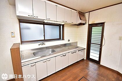 •  【キッチン】吊戸棚付きの収納豊富なキッチンです!勝手口や小窓付きでキッチン環境良好です♪