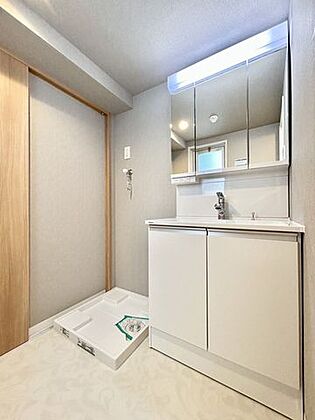 三面鏡付き洗面台は、2人並んで身支度も可能です♪