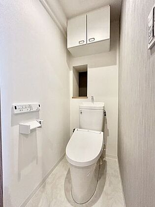 お手入れしやすい温水洗浄便座で、毎日快適♪スッキリ片付く収納付き♪