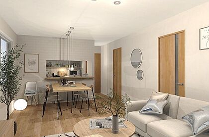 キッチンからダイニング、リビングが一直線になっているので、どこにいても家族の声が届きます♪