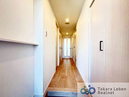 ナチュラルカラーの室内廊下、明るく開放感のある空間を演出します。