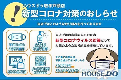 ■新型コロナウィルス感染拡大が全国的に続いておりますので、当社もお客様への感染防止のため様々な取り組みをおこなっております。■車の窓を開けてのご案内やお客様だけでの内覧なども対応しております。