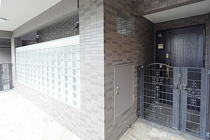共用廊下に面した部分には遮蔽ガラスブロックが用いられています。こちらの面には窓のある浴室とキッチンがございます。
