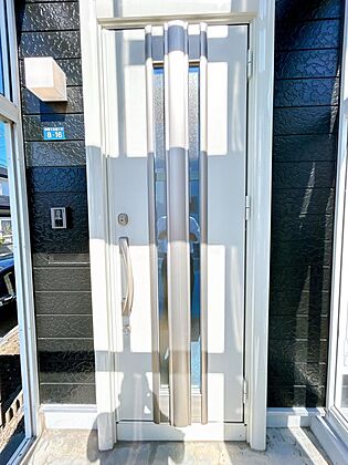 【リフォーム後】【玄関外観】玄関ドアは鍵交換を行います。白い玄関ドアは清潔な雰囲気がありますね。