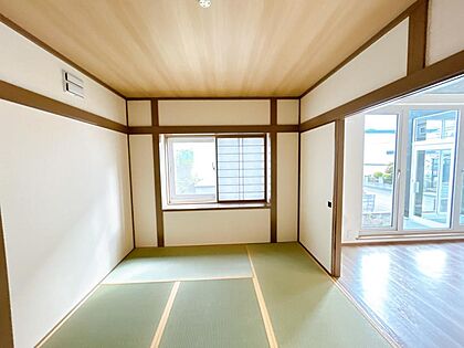 【リフォーム後】こちらの和室は畳表替え、照明交換、襖貼り換えを行いました。