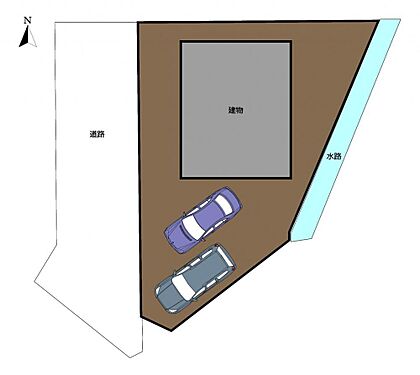 【敷地 配置図】駐車スペースの間口は約3mです。車庫を解体して2台分のスペースを確保します。