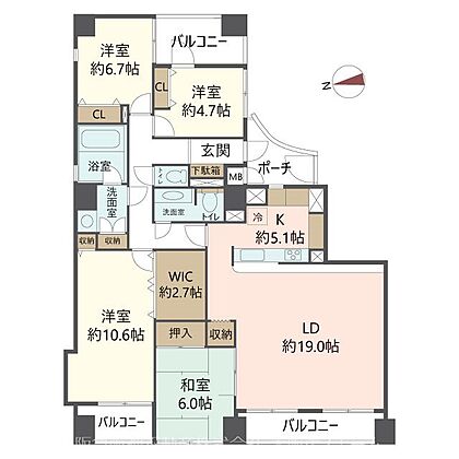 お部屋の広さは約120m2ございます。間取りは4LDKで北西角住戸です。