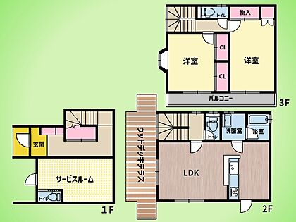 | 間取り | 2SLDK | 構造及び階数 | 軽量鉄骨 3階建て |