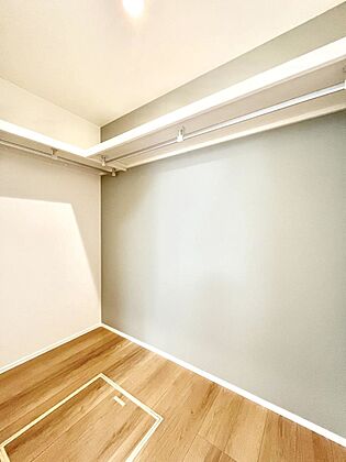 ◆1号棟◆〜Walk-in Closet〜 たくさんの洋服をかけてもシワになりにくいウォークインクローゼット。洋服以外にも、普段使わない家電やスーツケース、ストック品など何でも片付く嬉しい空間です。