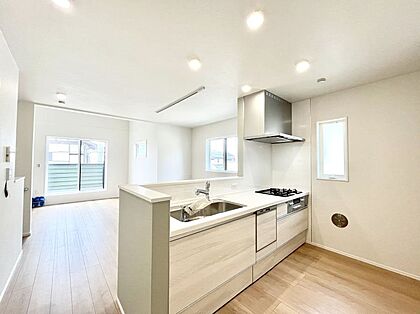 ◆1号棟◆〜Kitchen〜 会話が弾むリビング、料理が愉しくなるキッチン。家は、ただ生活する場ではなく、暮らしを愉しく、快適にする場所。笑顔の毎日、安らぎの日々のために、最新の設備・仕様を採用。
