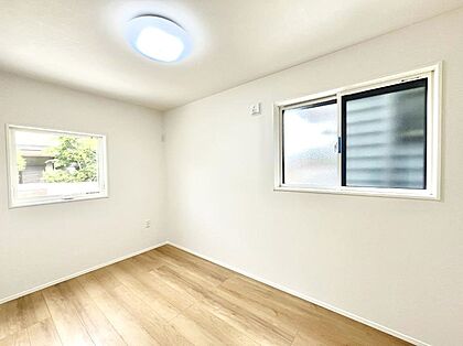 ◆1号棟◆〜Bed Room〜 2面採光を確保した明るい室内は、風通しも良く、大変居心地の良い空間となっております。爽やかな風を感じて起きる朝は、快適生活の始まりに!日当たりや通風がとても良い住まい♪