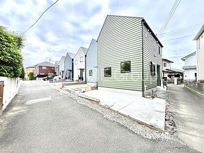 〜Exterior〜 前面道路:北東 4m 公道、南西 4m 私道 低層の一戸建てを中心とした街並みが整然と続き、周辺は高い建物が建っていないので、緑の多い閑静な趣を感じる環境です。