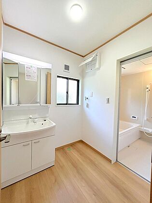 •  【リフォーム済】新品の3面鏡タイプで曇り止め機能付きの洗面化粧台に交換いたしました。洗面脱衣所は、壁・天井クロス張替え、床張替、照明器具交換を行い、清潔な空間に仕上がりました。