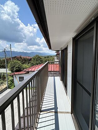 •  【リフォーム済】バルコニー床は床塗装を行いました。南むきで、お布団や洗濯物を干しておけば、お昼にはポカポカ。お日様の香りに包まれたお布団で気持ちよく眠れそうですね。広がる景色を眺めるのもオススメです。